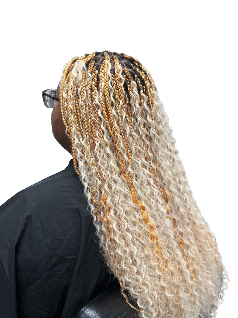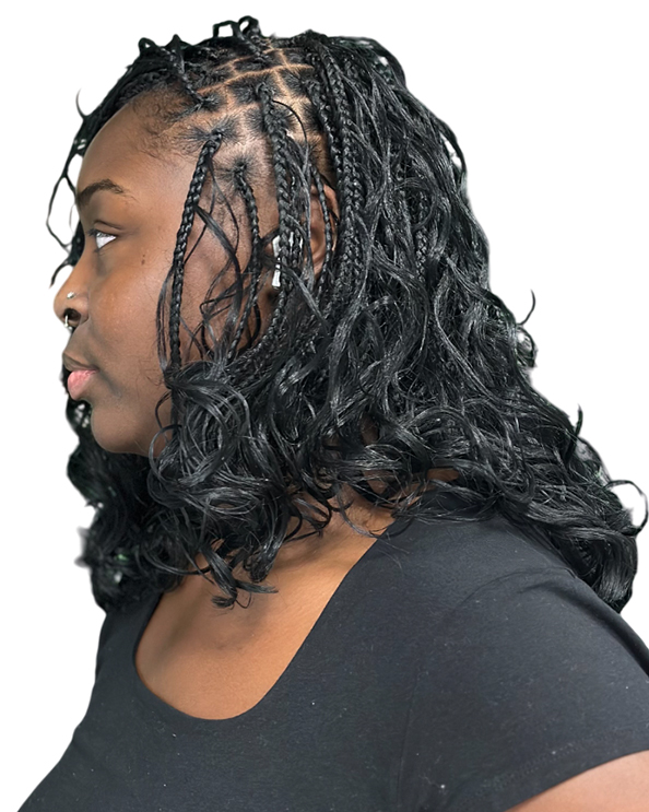 Whether you choose long, flowing braids or a shorter, playful length, boho knotless braids give you the perfect mix of elegance and individuality. Ideal for vacations, special events, or everyday wear, this style lets your personality shine through with every curl and braid.